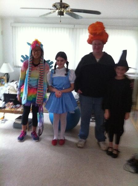 Costumes. Dorothy. Farmer Sheri. The Wicked Witch of the West and Rainbow from My